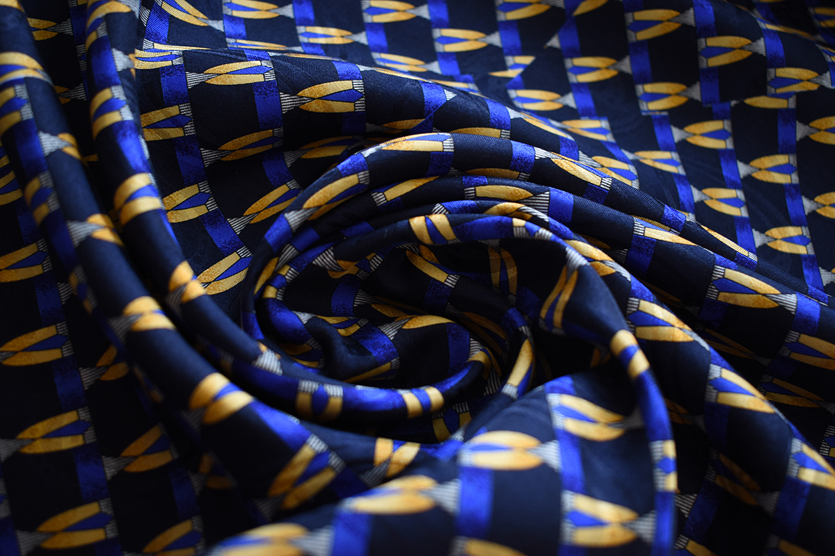 Шелк жаккард пр Б син-ж, купон 110 Фанси, 100, Б 1(ES)7л/19 100% Se